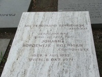 Johanna Bordewijk-Roepman, componiste, geboren als Johanna Suzanna Hendrina Roepman op donderdag 4 augustus 1892, overleden op woensdag 6 oktober 1971, begraven op Begraafplaats Oud Eik en Duinen (graf 1-2084) in 's-Gravenhage, trouwde in 1914 met F. Bordewijk.